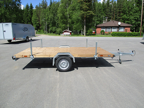 1500x3000 lavalla, 35cm laidalla ja Jaxal kuomulla oleva jarruton perävaunu.