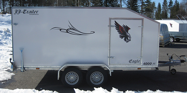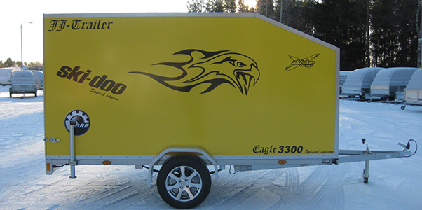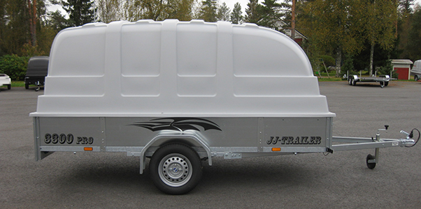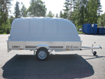1500x3250 lavalla, 35cm laidalla ja Jaxal kuomulla oleva jarruton perävaunu.