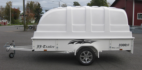 1500x3250 lavalla ja valkoisella Jaxal kuomulla oleva jarruton perävaunu.