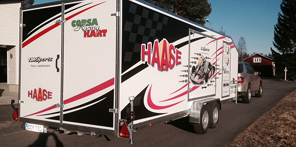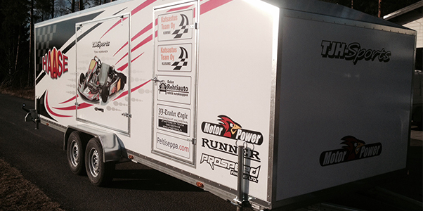 1500x3000 lavalla, 35cm laidalla ja Jaxal kuomulla oleva jarruton perävaunu.