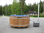 Kylpytynnyri 1000L ulkopuolisella merialumiinikamiinalla, lasikuituisella sisäaltaalla jossa vielä muovipinnoite. 180cm.